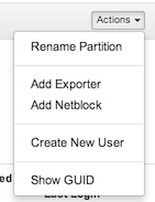 Administrative users have the ability to alter these parameters, and retrieve partition GUIDs, via the Actions menu in the upper-right corner of the partition box.