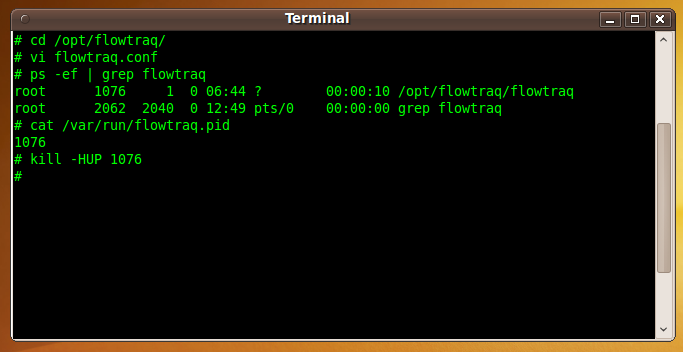 killto send theSIGHUPsignal toflowtraq, using the PID you found in step 1:% kill -HUP XXXX