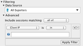 This serves a similar function to the feature provided by the Data Source selection box. Use this if you want to filter on more than one interface, but not all interfaces.